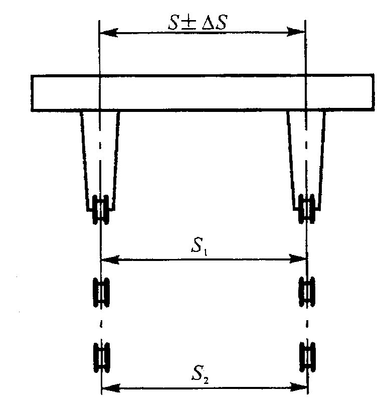 1、由車輪量出的起重機(jī)跨度S1,S2 跨度相對差│S1,S2│ 2、由橋架量出的起重機(jī)跨度S3,S4 跨度相對差│S3,S4│ |