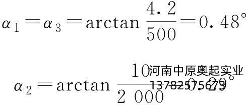 車輪群臺(tái)車的*大偏斜角(圖3-45),分三種情況考慮。**種:軌道1和軌道2或軌道3和軌道4之間因軌道高度差引起的車輪群臺(tái)車的*大偏斜角α1、α3;第二種:軌道2和軌道3之間因軌道高度差引起的車輪群臺(tái)車的*大偏斜角α2;第三種:軌道1和軌道4之間因軌道高度差累積引起的車輪群臺(tái)車的*大偏斜角α。