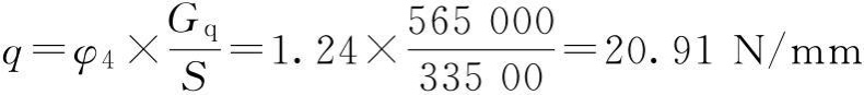 運(yùn)行沖擊系數(shù)取φ4=1.24;起升沖擊系數(shù)取φ2=1.22;