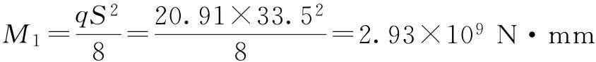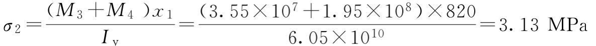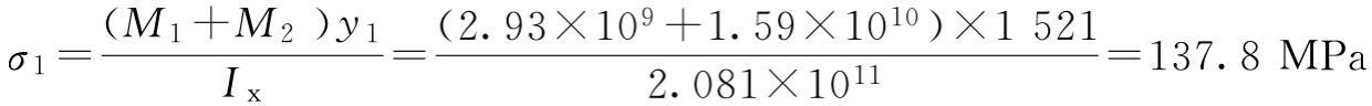 主梁慣性矩:Ix=2.081×1011mm4;y1=1521mm;y2=1273mm;Iy=6.05×1010mm4;x1=820mm;x2=708mm;彈性模量E=2.1×108MPa。