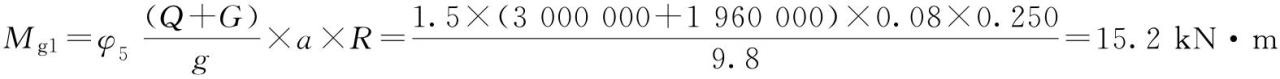 大車滿載直線運(yùn)行產(chǎn)生的慣性力矩:加速度取0.08