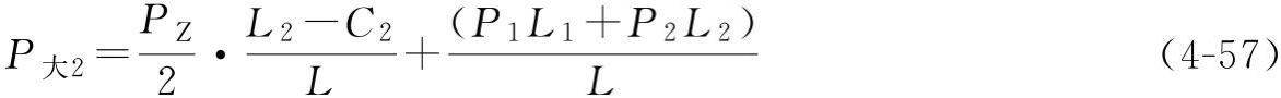 在設(shè)計參數(shù)都一樣的前提下(包括小車總重都一樣),對采用中龍門吊和大龍門吊結(jié)構(gòu)的大車,假設(shè)(P1+P2)=P,主梁寬度和主梁*大載荷重心位置都一樣(在大車軌道方向),把式(4-58)、式(4-59)和式(4-50)、式(4-51)相減,其差值大于零,說明中龍門吊的輪壓(雙軌)比大歐式的輪壓(四軌)要小,也就是說大龍門吊的車輪群總輪壓要大。