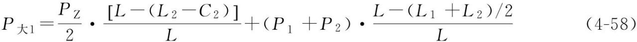 式中 P大1——靠近大車主梁走臺外側(cè)的車輪群總輪壓,每一個車輪輪壓為P大1/m;每一個角的車輪群數(shù)量為m;